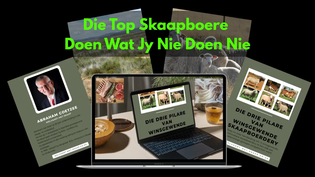 ’n stap-vir-stap mentorprogram wat ontwerp is om jou skaapboerdery van ’n finansiële stryd om oorlewing na ’n winsgewende, volhoubare besigheid te verander. As jy moeg is vir lang ure, stygende kostes en onsekerheid oor jou plaas se toekoms, is hierdie jou padkaart na sukses.