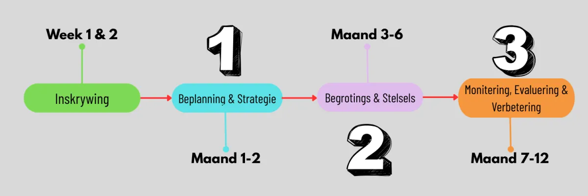 2. Kwartaalverslag en beplanning: Ons gaan eenkeer per kwartaal evalueer en regstellings maak.
